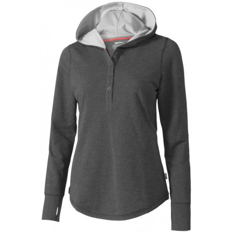 Bluză cu glugă damă Reflex din bumbac 52% și poliester 48%, 210 g/m2. Patru nasturi la gât, guler contrastant, manșete și bază tivite.