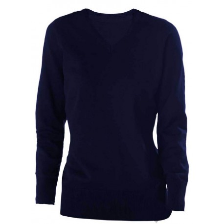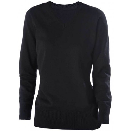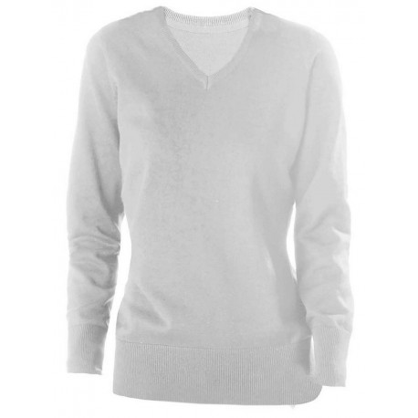 Pulover damă Jumper din bumbac 50% și acrilicic 50%, stil cambrat, guler dublu sub formă de V, 290 g/m2.