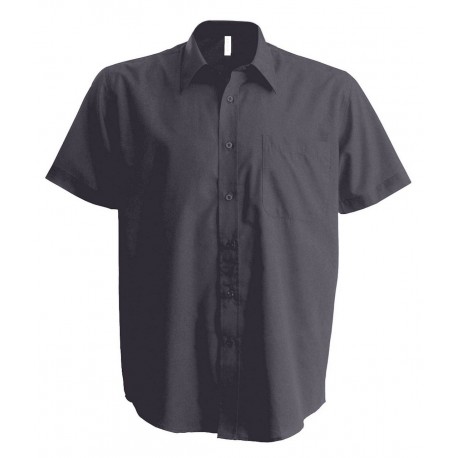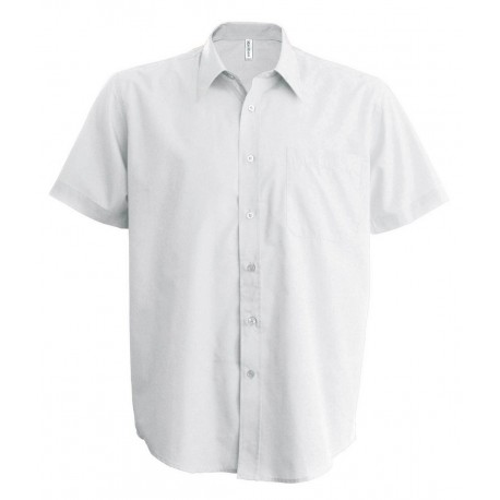 Cămașă bărbați mânecă scurtă Kariban Easy Care din bumbac poplin, țesătură ce se îngrijește ușor, mâneci scurte, nasturi în culoarea produsului, buzunar la piept stânga, platcă pe spate cu 2 falduri laterale, 1 nasture de rezervă. 120 g/m2.