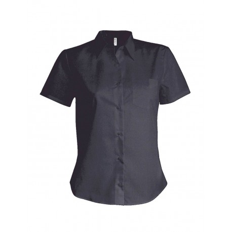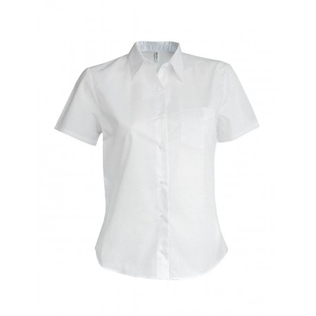 Cămașă damă mânecă scurtă Kariban Easy Care din bumbac poplin, țesătură ce se îngrijește ușor, guler delicat, mâneci scurte, nasturi în culoarea produsului, buzunar la piept stânga, 1 nasture de rezervă. 120 g/m2.
