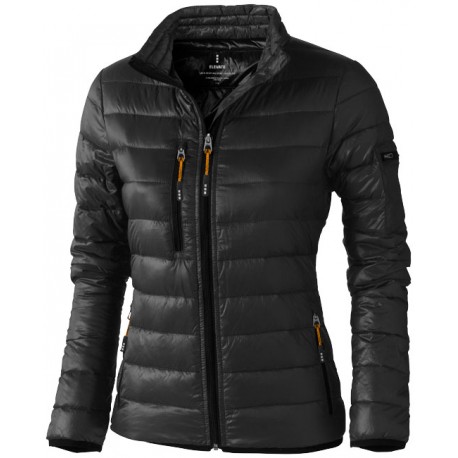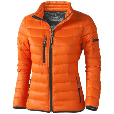 Geacă cu puf damă Scotia din nailon 20D cu strat de protectie la exterior ce respinge apa, căptușeală din puf 90% și pene 10%. Buzunare cu fermoar, buzunar pe mâneca stânga si piept, manșete și bază elastice, protecție fermoar. Respirabilă și rezistentă la vânt. 115 g/m².