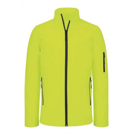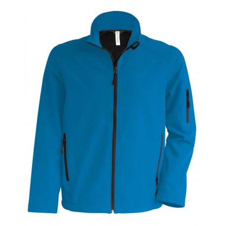 Jachetă bărbați Kariban Softshell 300g/m2, respirabilă până la 3000 g/m2/24h, rezistentă la apă până la 8000 mm, 3 straturi de țesătură, 95% poliester, 5% elastan la exterior, polar la interior. Jacheta este prevăzută cu fermoar frontal, doua buzunare laterale cu fermoar și un buzunar cu fermoar pe mâneca stângă.