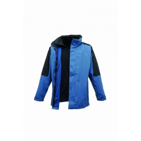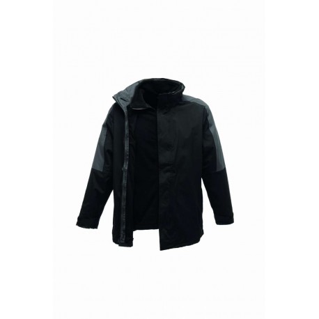 Geacă bărbaţi Regatta Defender III 3-în-1 realizată din poliester jacquard texturat impermeabil Hydrafort 5000, material anti vânt, cusături lipite, interior din fleece anti-pilling Symmetry de 220 g, mulată pe corp, glugă ascunsă cu ajustare, mâneci ajustabile, tiv talie shockcord ajustabil, 2 buzunare inferioare cu fermoar, 1 buzunar frontal cu fermoar, buzunar acces pentru broderie.