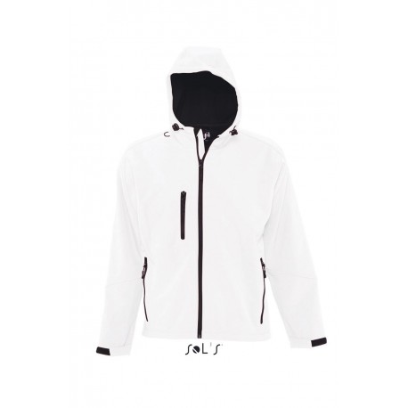 Geacă softshell bărbați Sols Replay realizată din 94% poliester și 6 % elastan din material waterproof 8000 mm și respirabil 1000 g/m2 la 24 ore, cu 2 buzunare laterale și 1 buzunar frontal pe piept.