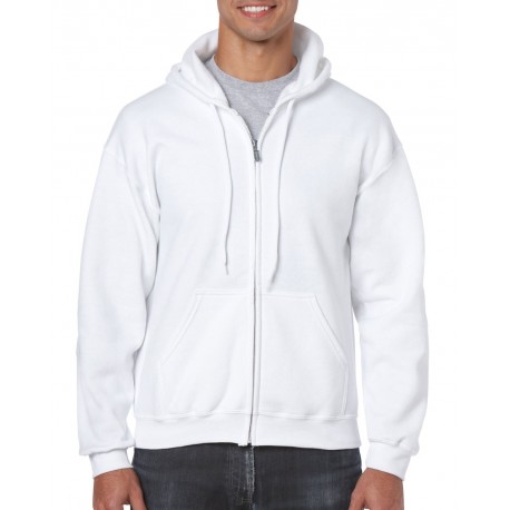 Bluză cu fermoar Gildan Heavy Blend Full Zip 279 g/m2, (265 g/m2 în alb), 50% bumbac, 50% poliester tricotat, glugă necăptușită cu șnur, fermoar metalic, țesătură suprapusă peste fermoar, buzunare aplicate.