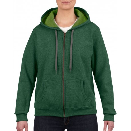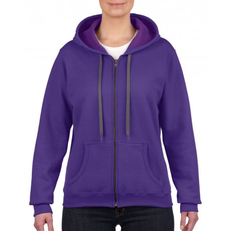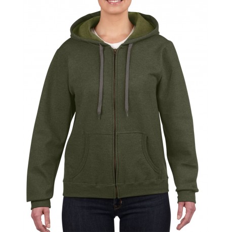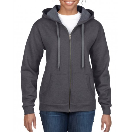 Hanorac damă Gildan Heavy Blend Vintage din bumbac 50% și poliester 50%, țesătură moale, pilling redus, stil feminin, glugă necăptușită, fermoar lung metalic, buzunare frontale, 271 g/m2.
