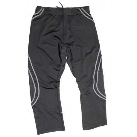 Pantaloni femei de alergat 3 sferturi realizați din 90% poliester și 10% elastan, 250 g/m2, material ușor, bandă talie elasticizată cu șnur, buzunar mic interior, panouri de culoare contrastantă la genunchi, coapse și spate.