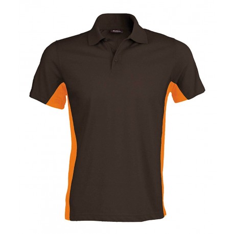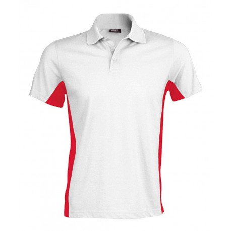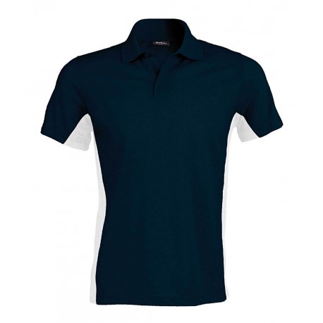 Tricou polo bărbați Kariban Flag 220g/m2, 65% poliester, 35% bumbac, guler tricotat, 3 nasturi, fante laterale, panele contrastante lateral.