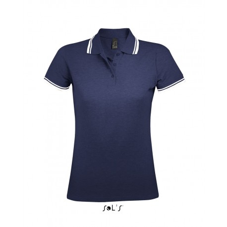 Tricou polo damă Sols Pasadena Pique realizat din 100% bumbac ringspun, 200 g/m2 mulat pe corp și elegant. Tricoul are 3 nasturi în aceeași culoare cu tricoul și nasturi de rezervă pe interior.