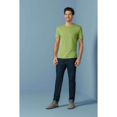 Tricou Gildan Softstyle 153 g/m2, (144 g/m2 în alb), 100% bumbac jersey filat și tricotat (excepție pentru anumite culori) 1.9 cm guler, manșon dublu și tivit la bază.